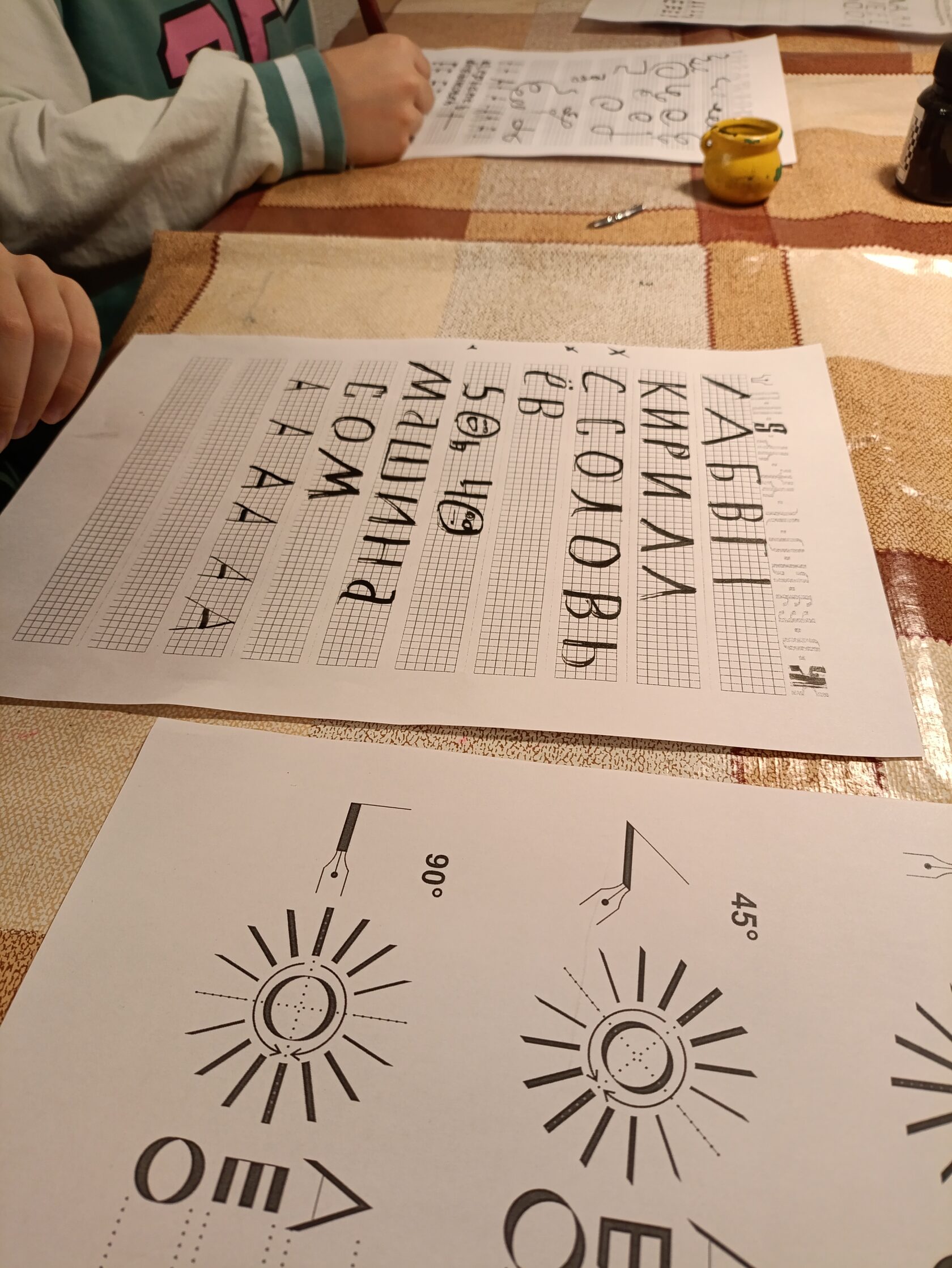 Новые участники познакомятся с каллиграфическими принадлежностями, такими как перодержатель, плоские перья и конечно же тушь! Освоят принцип работы ширококонечным пером и научатся писать под 00 углом наклона пера! А ребята, уже освоившие письмо пером и тушью, обязательно помогут в нелёгком, но таком интересном деле!