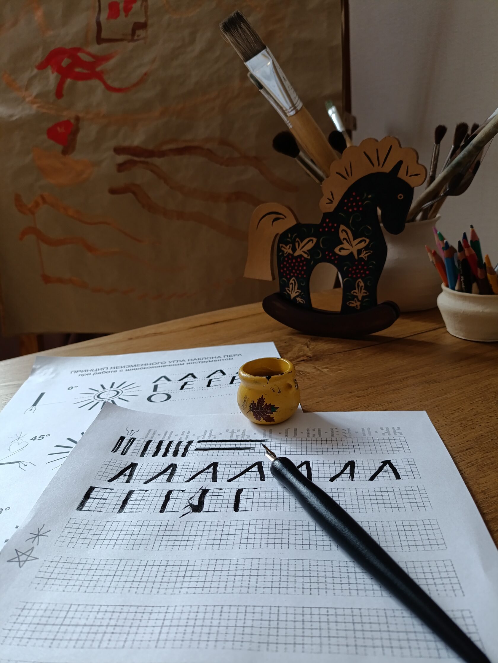 Ребята освоят принцип работы ширококонечным пером, научатся техникам письма под разным углом наклона пера.